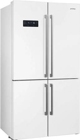 SMEG FQ60BDF Amerikaanse koelkast./h3#De Smeg FQ60BDF Amerikaanse koelkast met een vriesgedeelte aan de onderzijde is 182 cm hoog en 90,8 cm breed. Maak gebruik van 572 liter totale inhoud, waarvan een koelgedeelte met 376 liter inhoud. Dit ruime koelgedeelte kunt u met twee deuren openen, beschikt over 2 groentelades en een snelkoelfunctie: snel uw levensmiddelen koelen. Uw levensmiddelen invriezen kunt u in het ruime vriesgedeelte aan de onderzijde. Maak verder met deze Smeg FQ60BDF gebruik van een snelvriesfunctie en NoFrost: nooit meer ontdooien van het vriesgedeelte en voorkomt rijpaanslag. Maak tevens gebruik van een handige ijsmaker (manueel) in het vriesgedeelte. Belangrijkste kenmerken * 182 cm hoog | 90,8 cm breed | Vrijstaand (koelgedeelte boven, vriesgedeelte onder) * Uitgevoerd in het wit * Totale netto inhoud: 572 liter * Snelkoelfunctie | Snelvriesfunctie * NoFrost: nooit meer ontdooien van het vriesgedeelte en voorkomt rijpaanslag * IJsmaker in het vriesgedeelte (manueel) Koelgedeelte * Inhoud koelgedeelte: 376 liter * Ruime gescheiden groenteladen * LED verlichting Vriesgedeelte * Inhoud vriesgedeelte (onderzijde): 196 liter * Bewaartijd bij stroomstoring: 10 uur * Vriescapaciteit: 4,6 kg per 24 uur Overige kenmerken * Meegeleverde toebehoren: eierhouder, handleiding * Klimaatklasse: SN, T * Overige maten zoals deurbreedtes: zie maatschets Geleverd nieuw in doos incl. volledige garantie en handleiding.Smeg FQ60BDF Amerikaanse koelkast Wit
